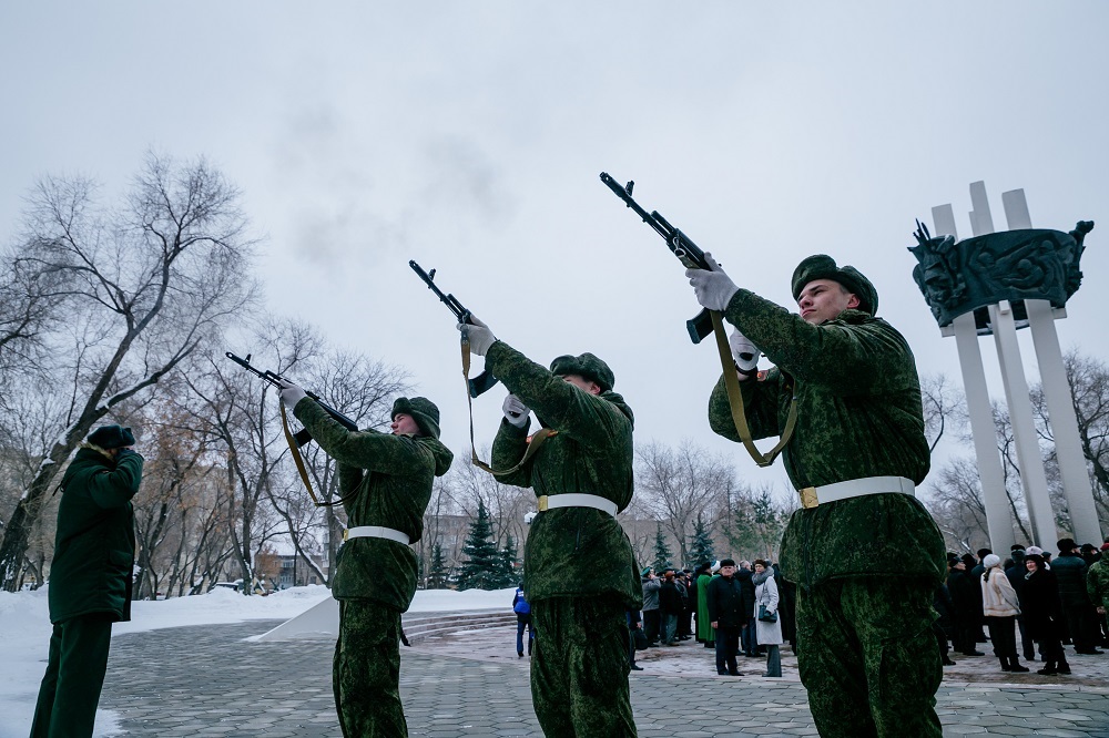 В знак памяти о воинах, погибших в боях за Родину, торжественная церемония завершилась оружейным залпом.
