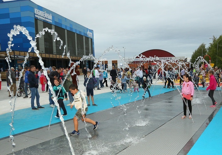 Возле преображенного спорткомплекса «Юбилейный» вырос целый спортивный городок. За четыре месяца здесь был обновлен фасад зданий, демонтированы старые игровые и спортивные снаряды, с помощью разноцветной плитки площадь разделена на зоны. В одной появилась игровая площадка для самых маленьких оренбуржцев. Для тех, кто постарше подойдут для занятий уличные тренажеры. Появилась возможность поиграть на открытом воздухе у любителей настольного тенниса. Скейтбордисты и роллеры смогут оттачивать мастерство на площадке для экстремальных видов спорта. На месте прежней асфальтированной площадки для уличного баскетбола появилась новая с современным спортивным покрытием, которое снижает вероятность получения травм. Дети всех возрастов облюбовали пешеходный фонтан.
