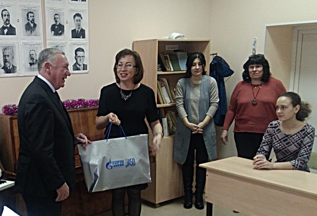 В преддверии новогодних праздников депутаты откликнулись на просьбу коллектива – сегодня Олег Ванчинов приехал в школу, где вручил коллективу ноутбук.