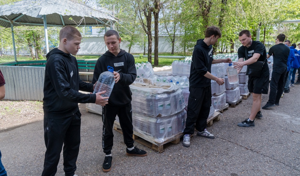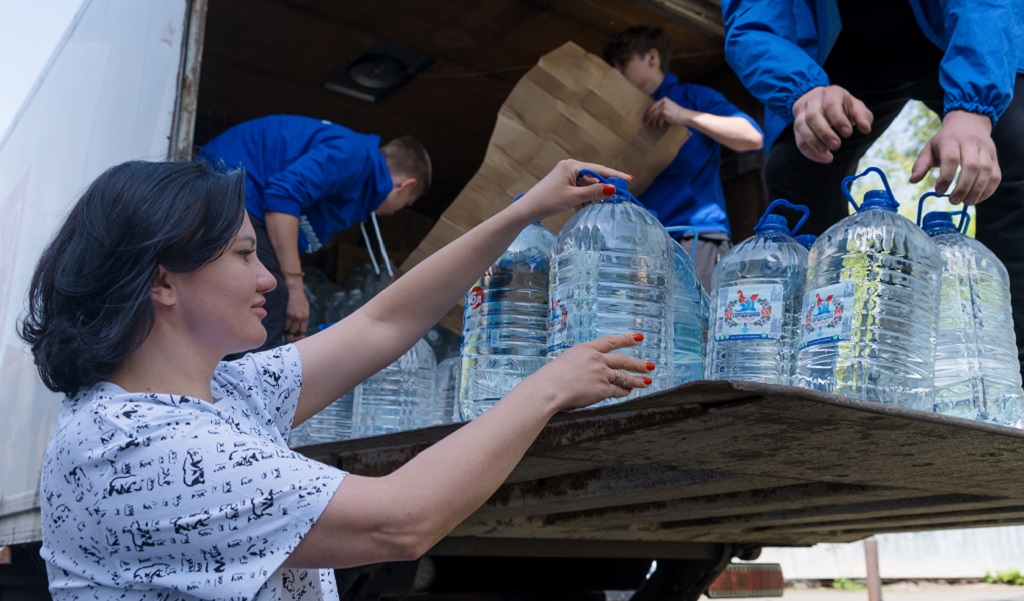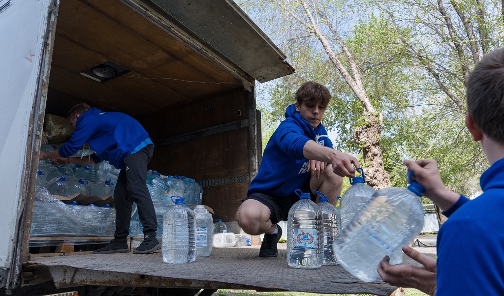 Сегодня из Нижнего Новгорода пришла 14-тонная фура с питьевой водой, антисептиками для обработки жилых помещений, бытовыми принадлежностями.
