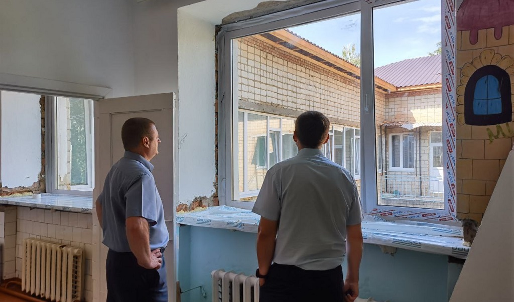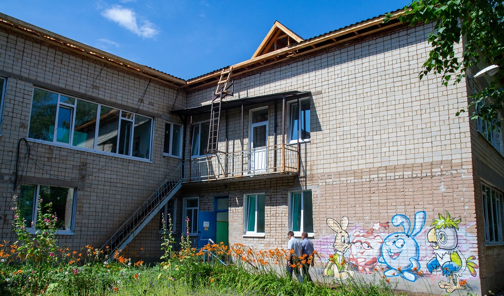 Здесь в рамках региональной программы по модернизации дошкольных образовательных организаций ведется капремонт кровли и окон.