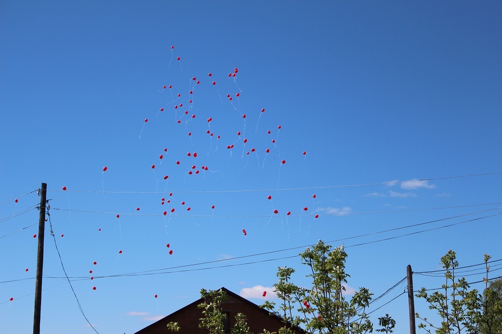 В завершение праздника самые маленькие участники митинга выпустили в небо красные воздушные шары.