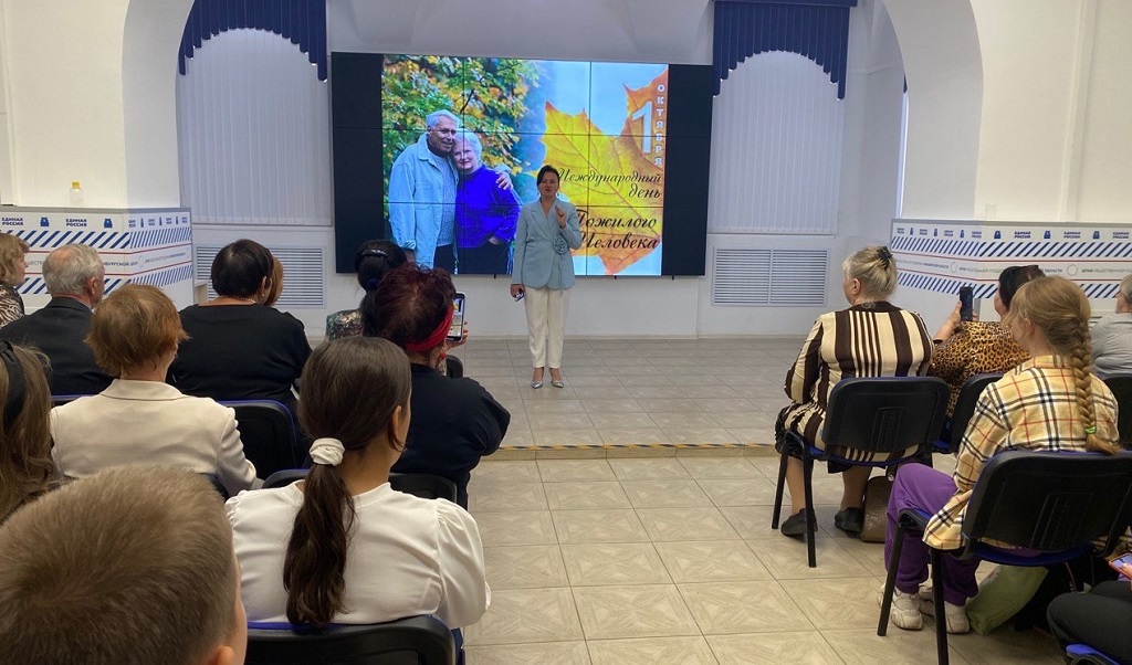 Елена Афанасова в Штабе общественной поддержки Оренбургской области, где было организовано множество различных праздничных площадок, поздравила представителей старшего поколения.