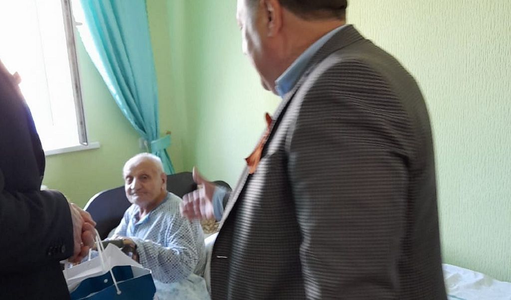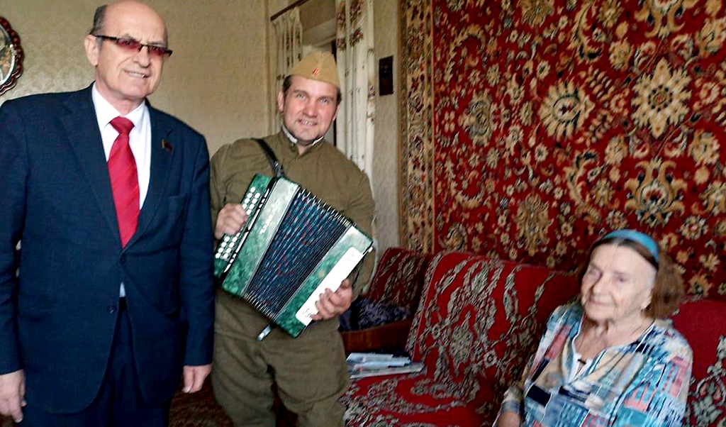 Депутат вручил подарки и юбилейную медаль ко Дню Победы. Под гармонь вместе с ветераном спел песни военных лет.