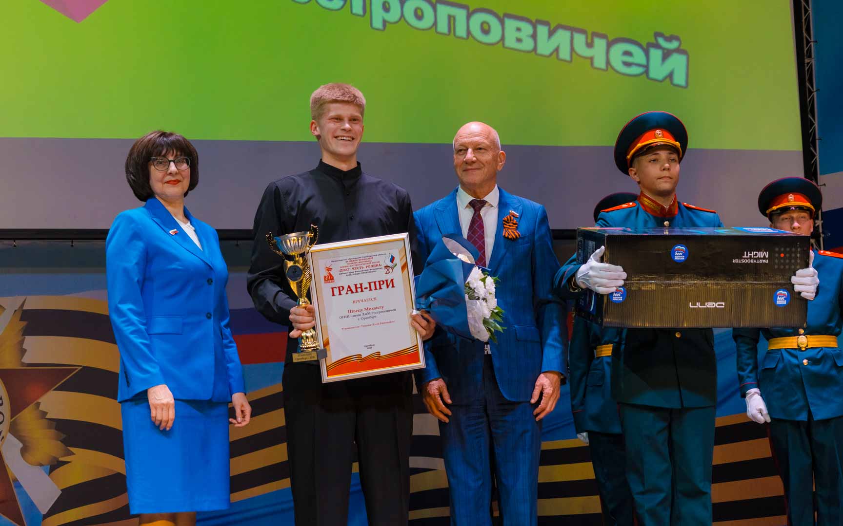 Обладателем Гран-при назван Михаил Швец – Оренбургский государственный институт имени Л. и М. Ростроповичей. Диплом и Кубок победителя ему вручили депутаты Законодательного Собрания Татьяна Еременко и Геннадий Аверьянов. Подарком от парламентариев стала большая музыкальная колонка с микрофоном.