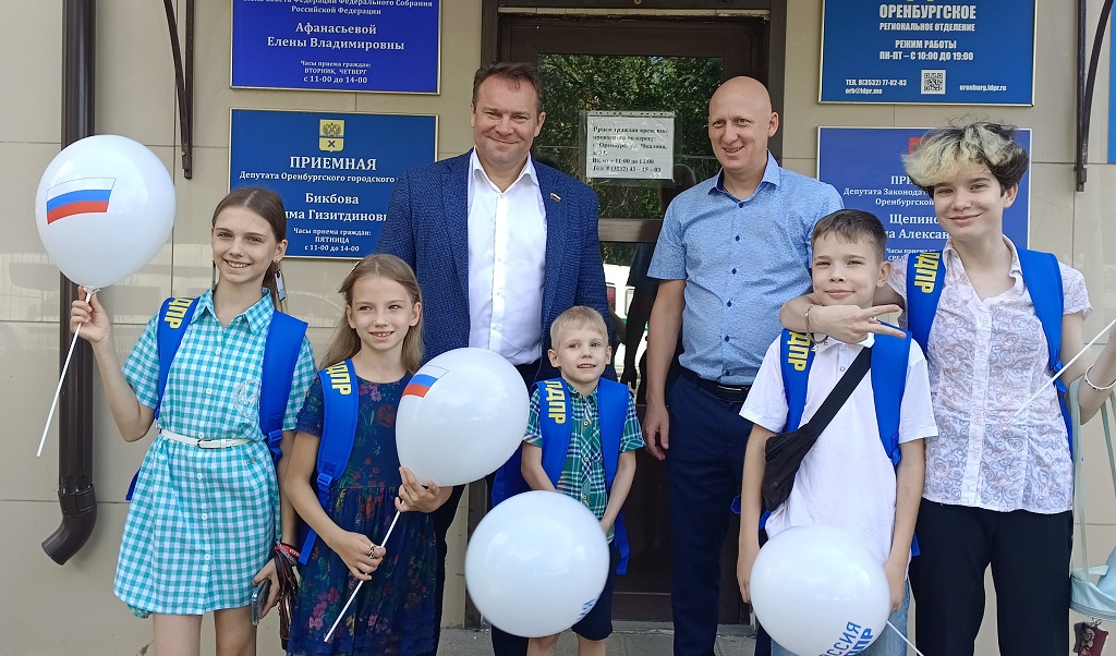 Руководитель Фракции ЛДПР в ЗС пожелал школьникам из многодетных семей успехов и вручил им полезные подарки – рюкзаки и канцтовары.