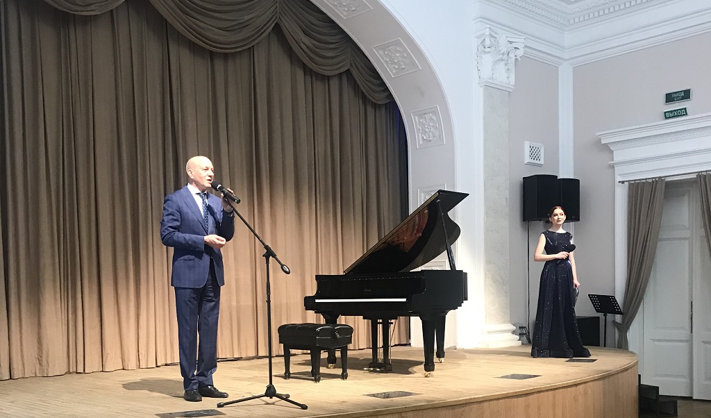 Геннадий Аверьянов приветствовал участников и гостей концерта и вручил благодарности председателя Законодательного Собрания преподавателям института Елене Козовчинской и Любови Сусловой.
