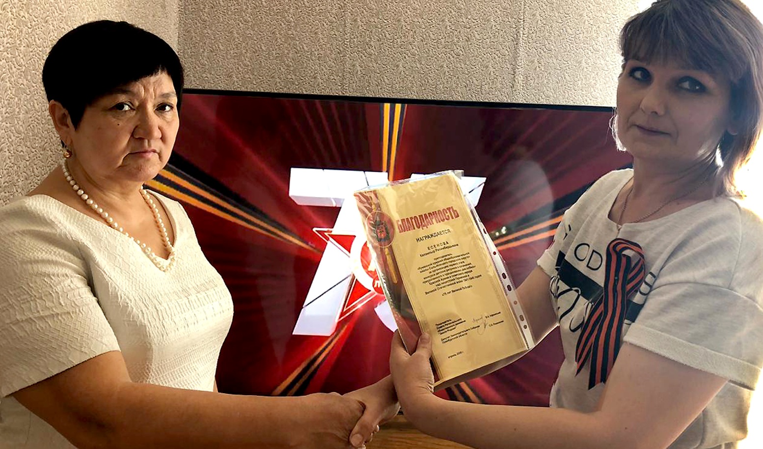 Лучшими были признаны рисунки Даниила Сорокина, Марины Коростиной и Адемы Жубанышевой, а также сочинение восьмиклассника Арыстана Бикмагамбетова «В нашей семье помнят о войне».