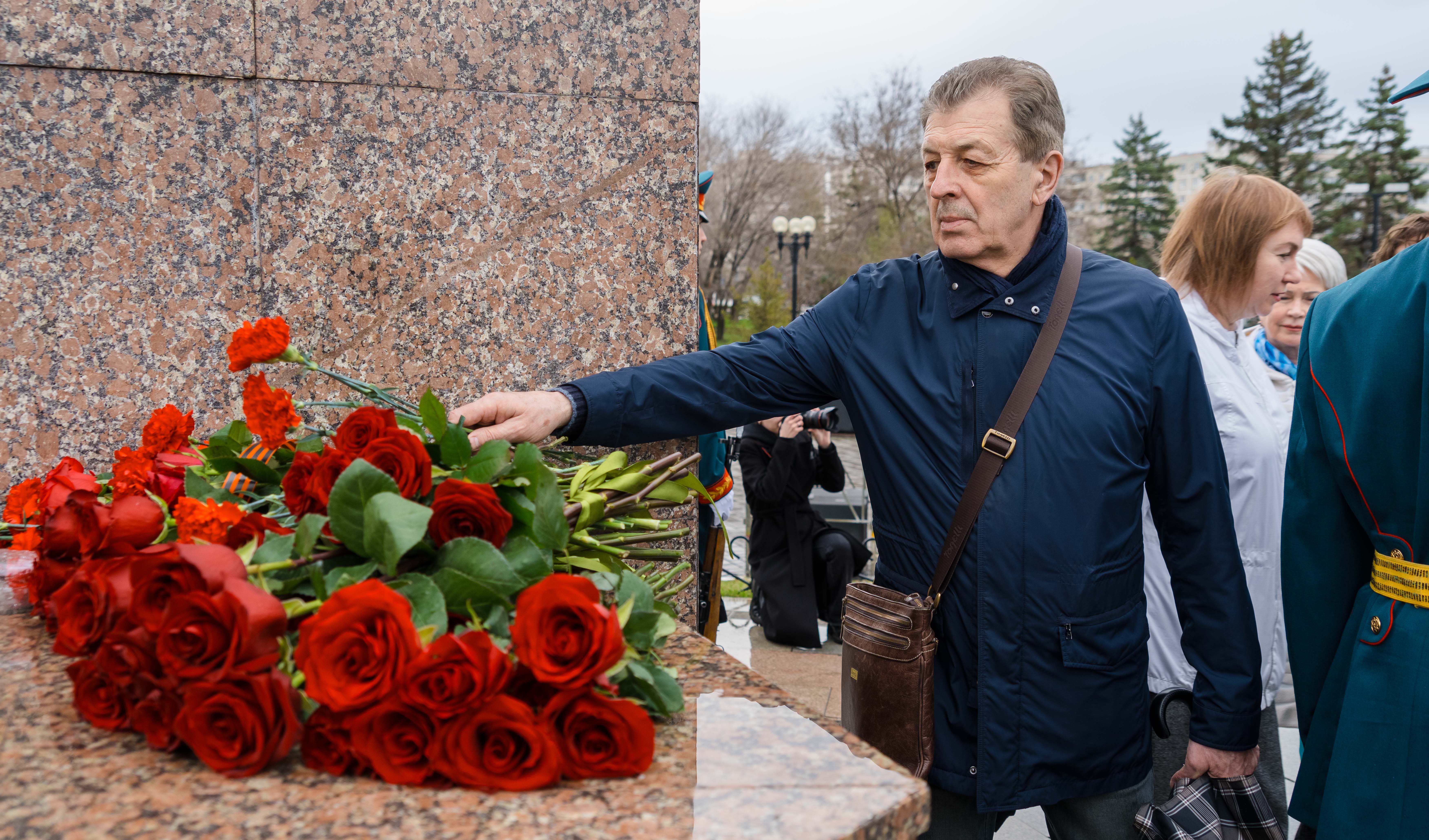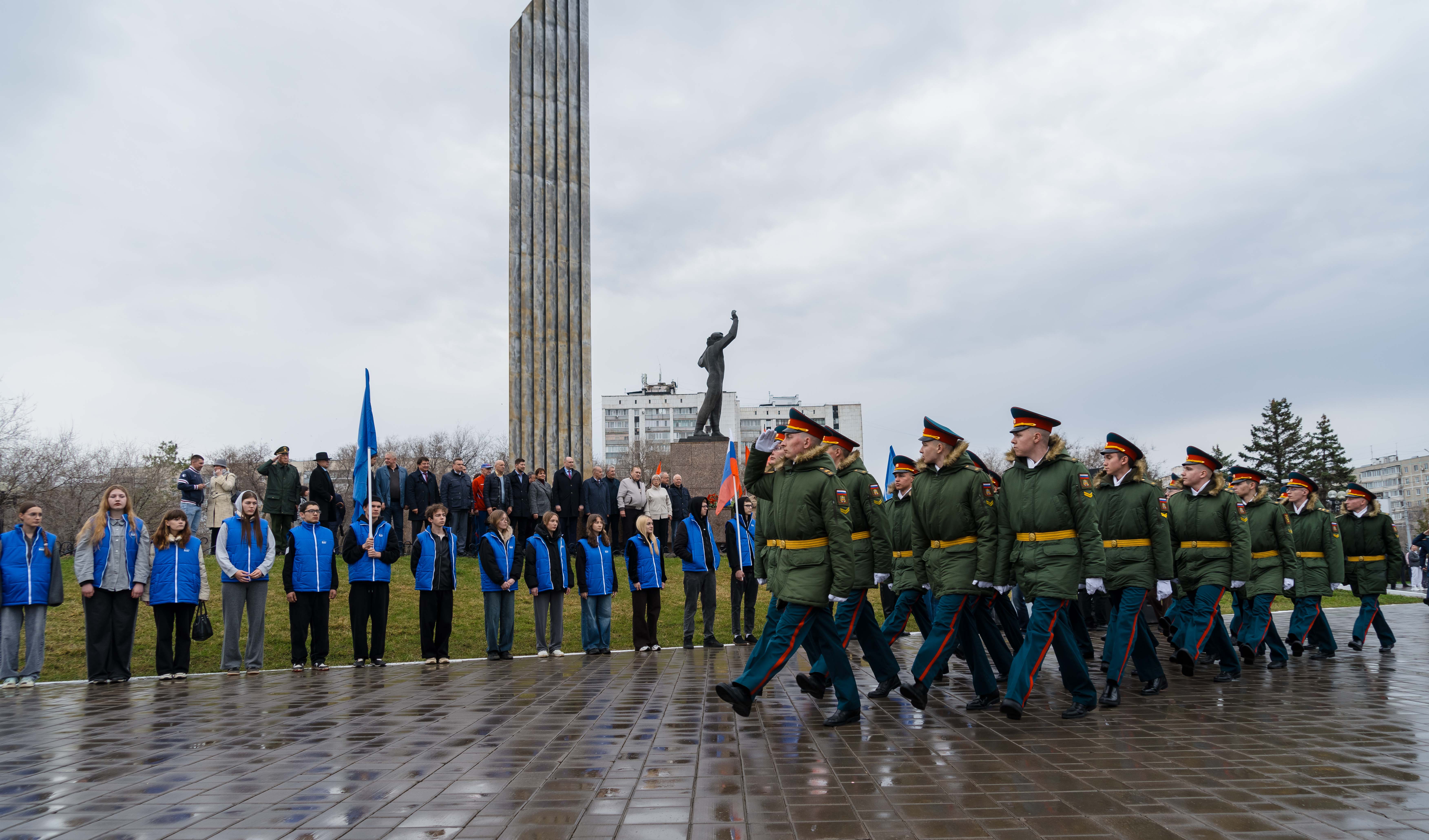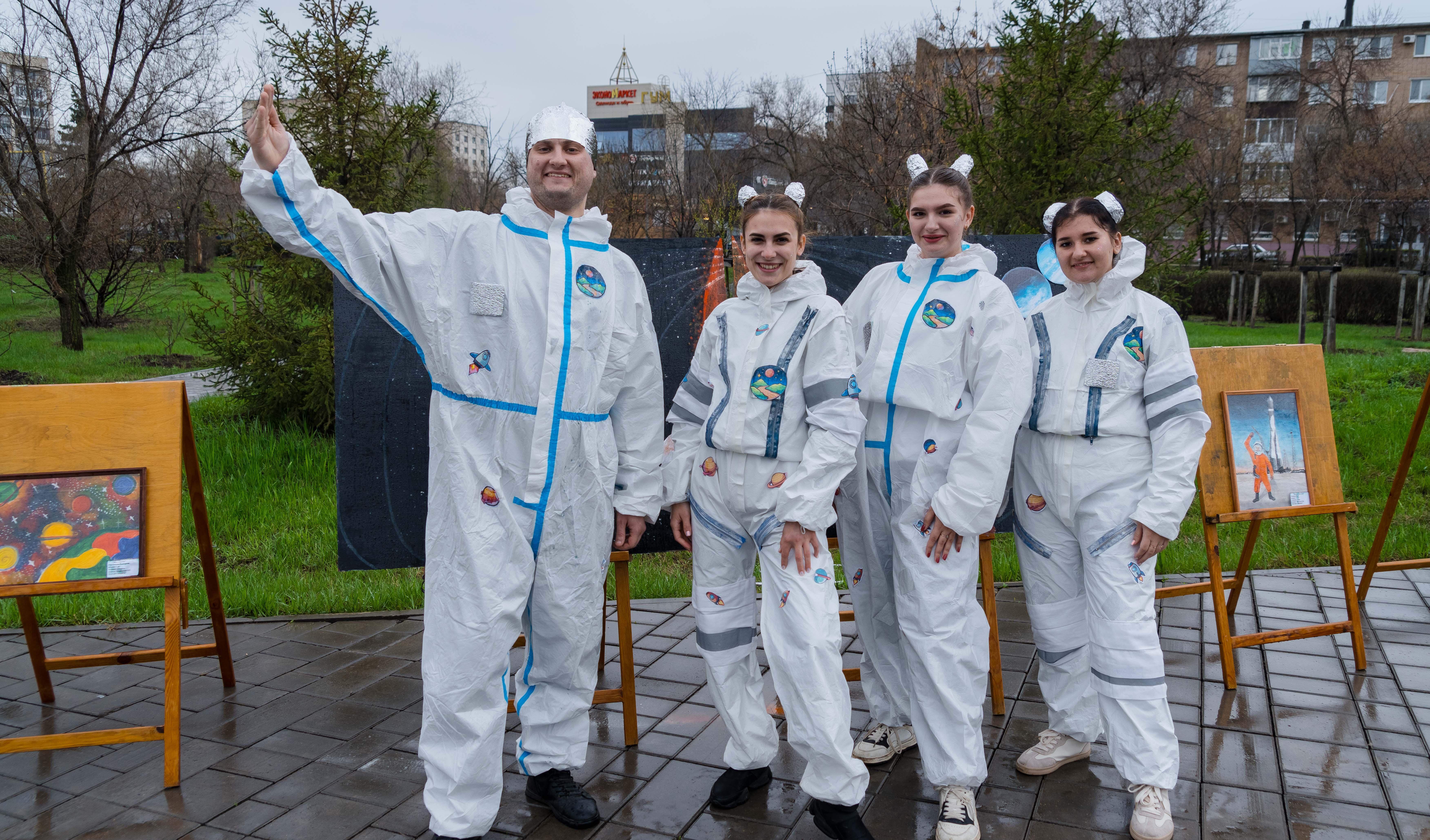 Возложение цветов, торжественный марш кадетов, выставка об истории освоения космоса и современных достижениях.