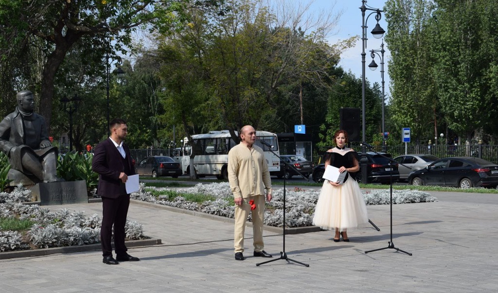 Оренбуржцы почтили память поэта минутой молчания и возложили цветы к памятнику.