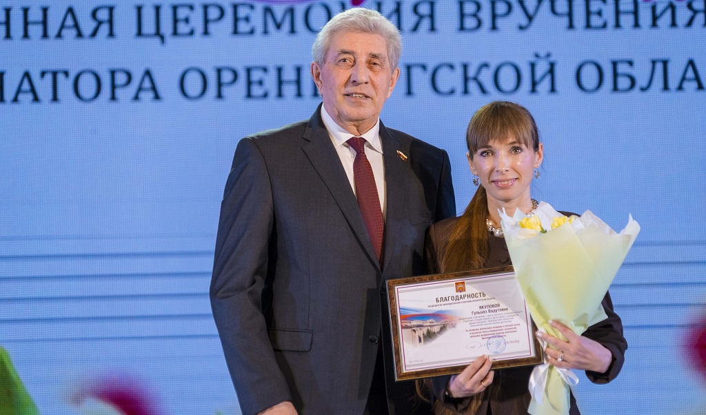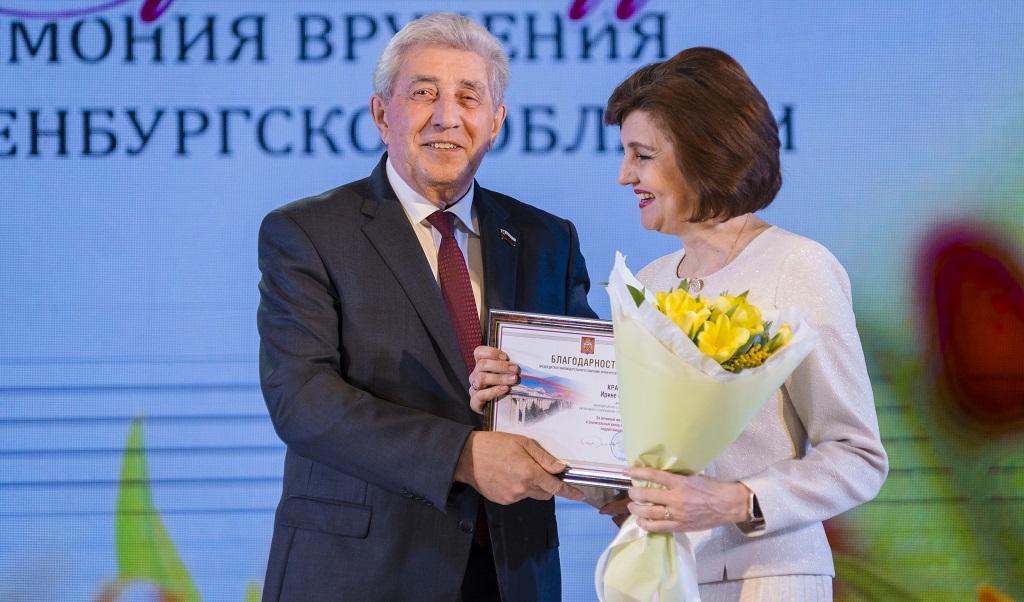 Благодарности председателя Законодательного Собрания получили заведующая отделением областного онкодиспансера Гульназ Якупова, директор гимназии №4 Оренбурга Ирина Крайнова, воспитатель детского сада «Сказка» х.Степановский Олеся Свирская, многодетная мама Екатерина Логинова, главный специалист Саракташского районного отдела образования Елена Кормишина.