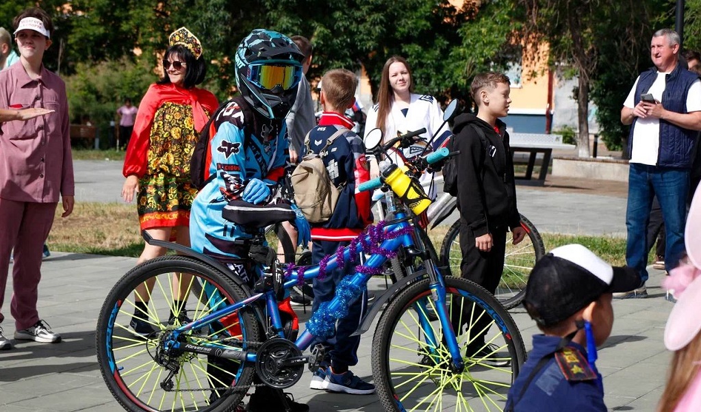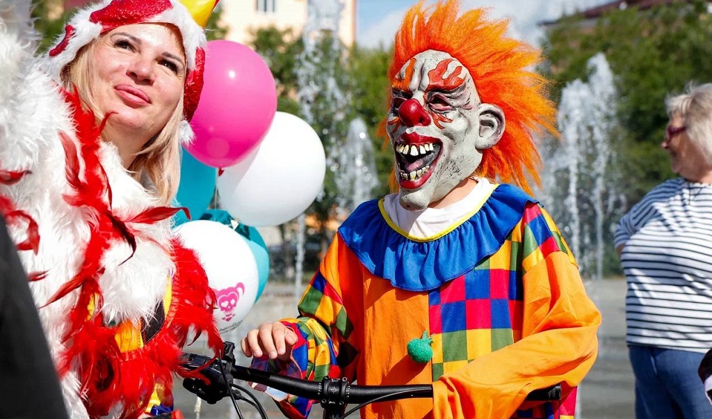 Более 500 новотройчан выкатились со своими двухколесными друзьями в центр города. Практически каждый был в костюме сказочного персонажа, героя мультфильма или представителя рабочего класса, символа Новотроицка.